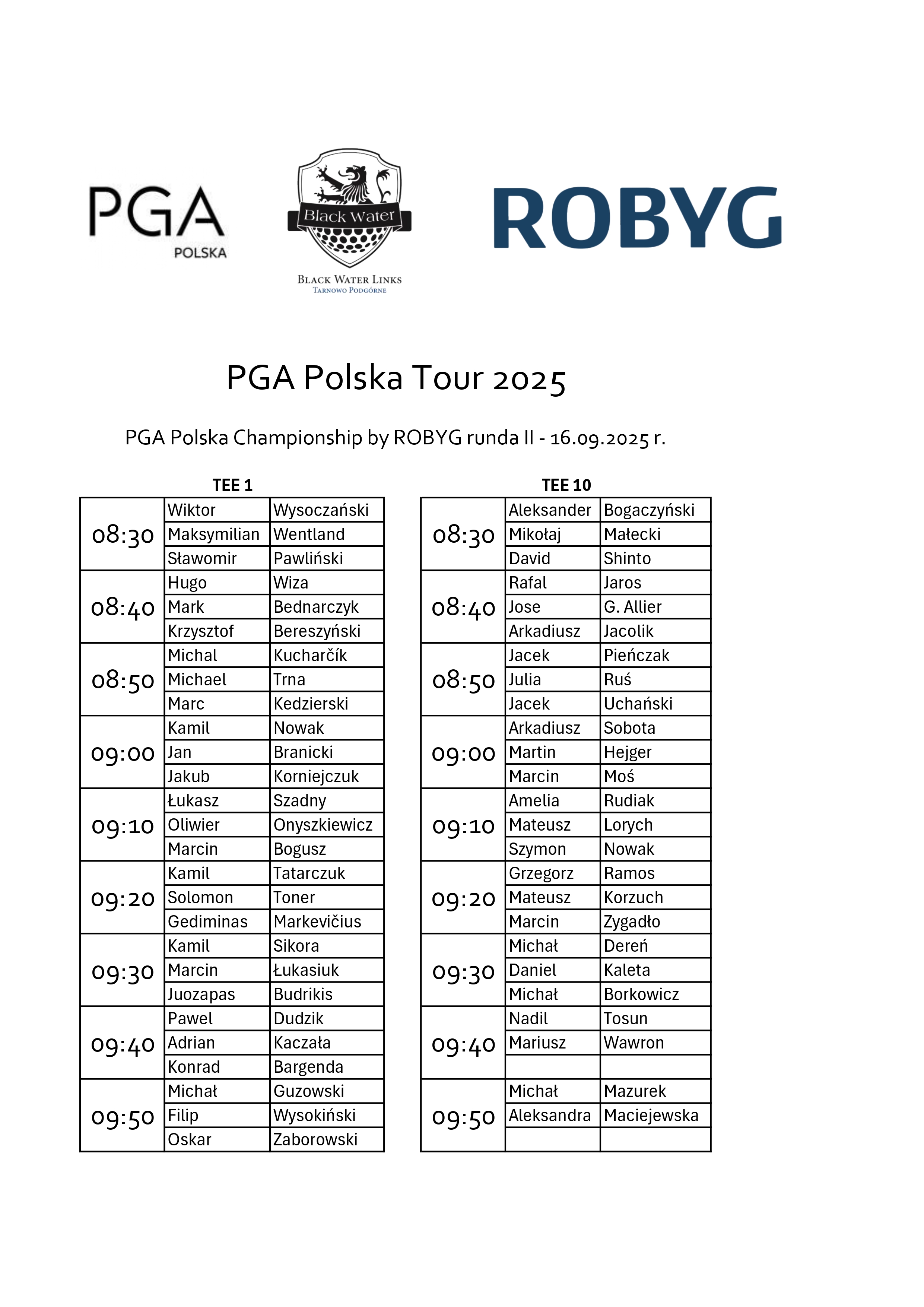 Lista startowa runda II PGA Polska Championship by ROBYG